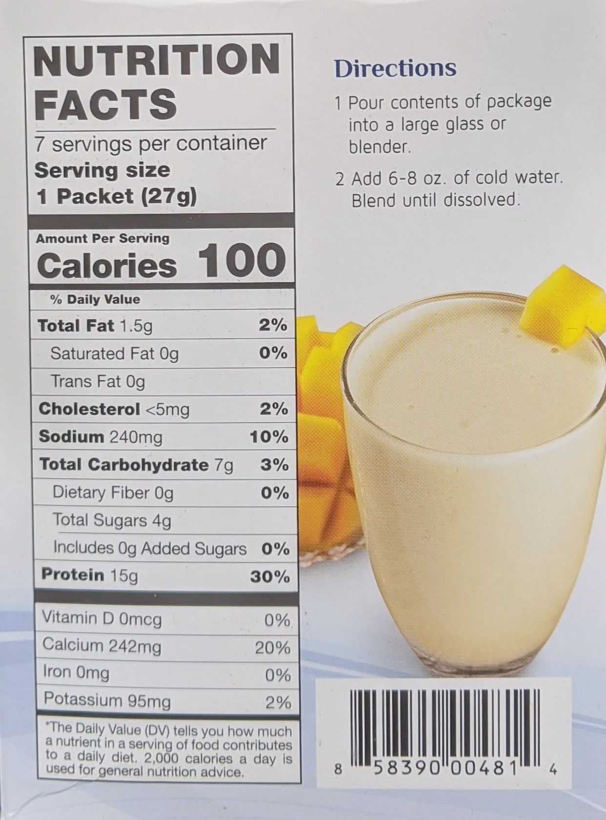 Directions: Combine 8oz of cold water and one packet in a 10oz or larger glass. Stir vigorously until you achieve a smooth, creamy consistency. Enjoy!