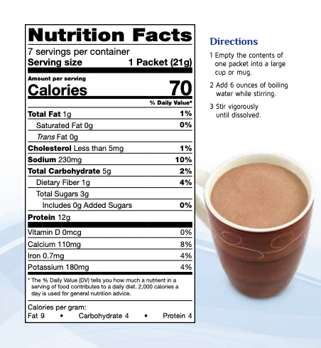 Cozy up with this winter-time Best-Seller, a delightful Creamy Hot Cocoa. These Creamy Hot Cocoa drinks pack 12g of protein and a mere 70 calories per serving, and were created for low-calorie diets such as bariatric and diabetic diets.